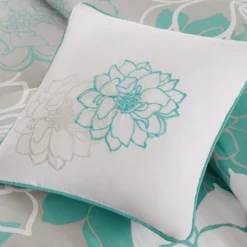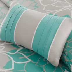 - Includes comforter, bed skirt, 2 shams and 3 decorative pillows