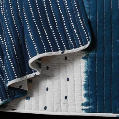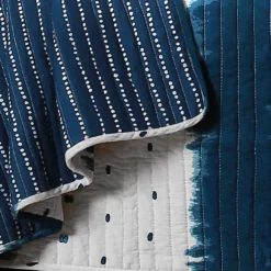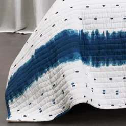 A tie-dye design inspired by the traditional shibori technique lends modern boho style to this quilt set from Lush Decor. Matching shams complete the look and the breathable cotton construction keeps you cozy through the night. The quilt reverses to dotted stripes in white against a deep navy hue so you can switch up your bedroom style on a whim.