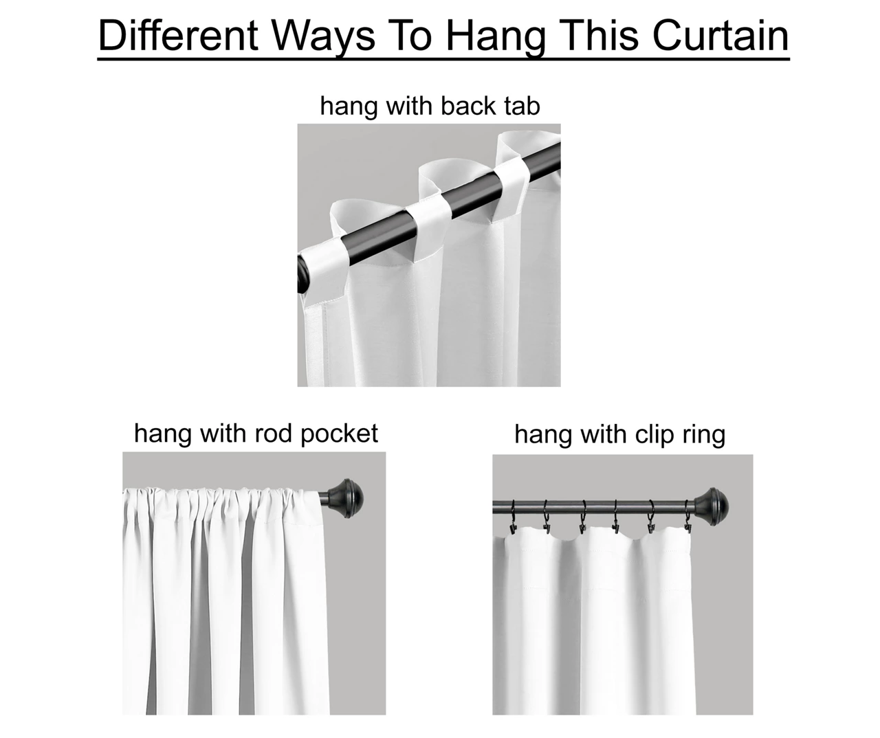 - 3″ back tab rod pocket top