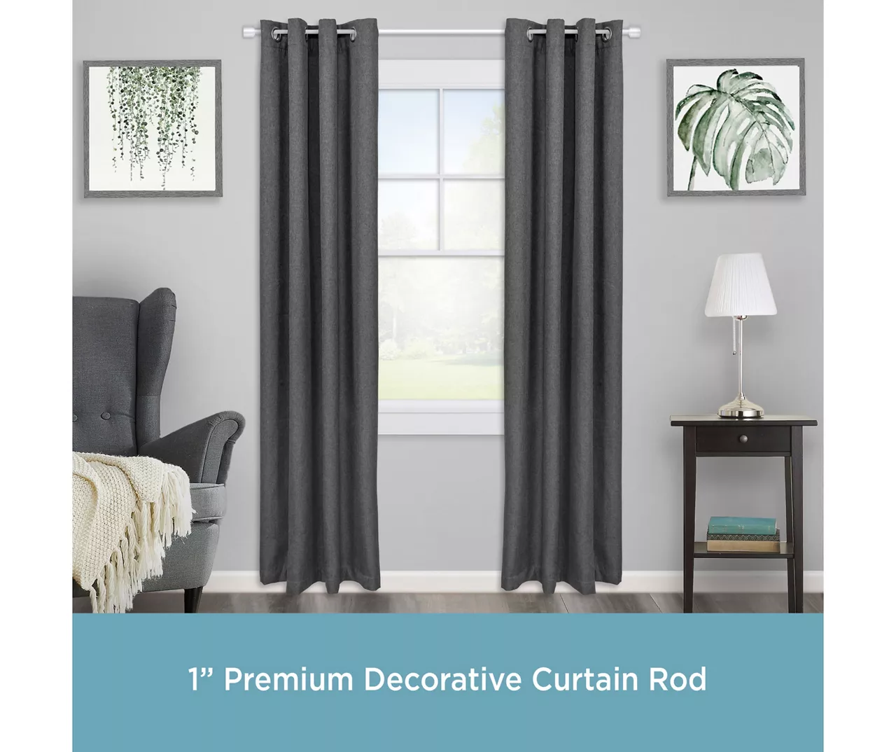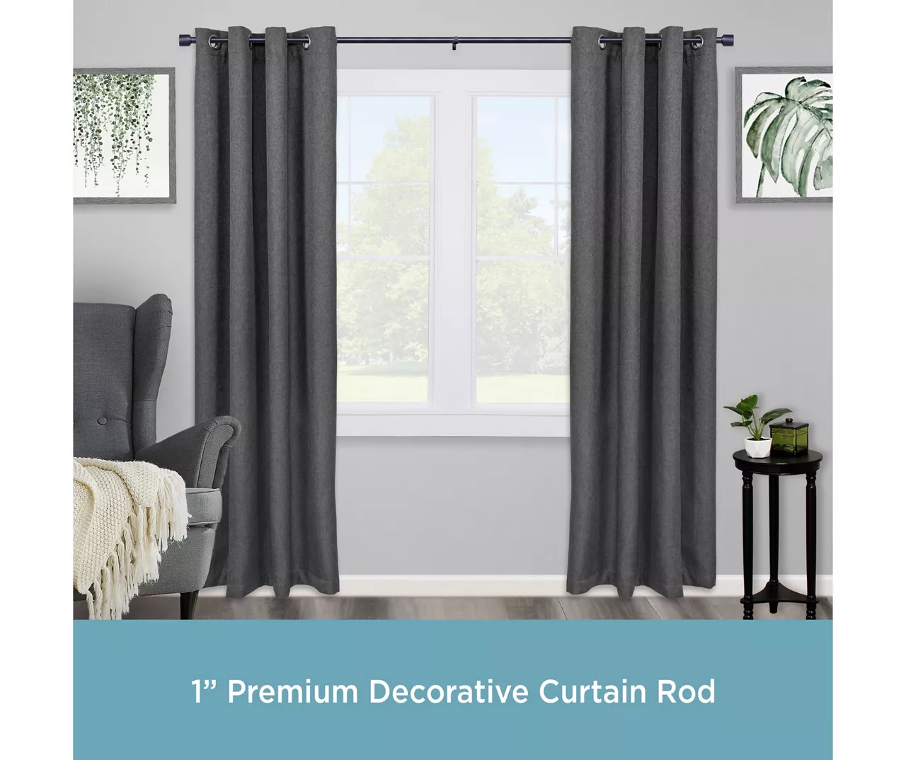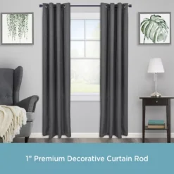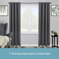 - 1″ diameter curtain rod adjusts from 36-66″ and projects 4.4″ from the wall