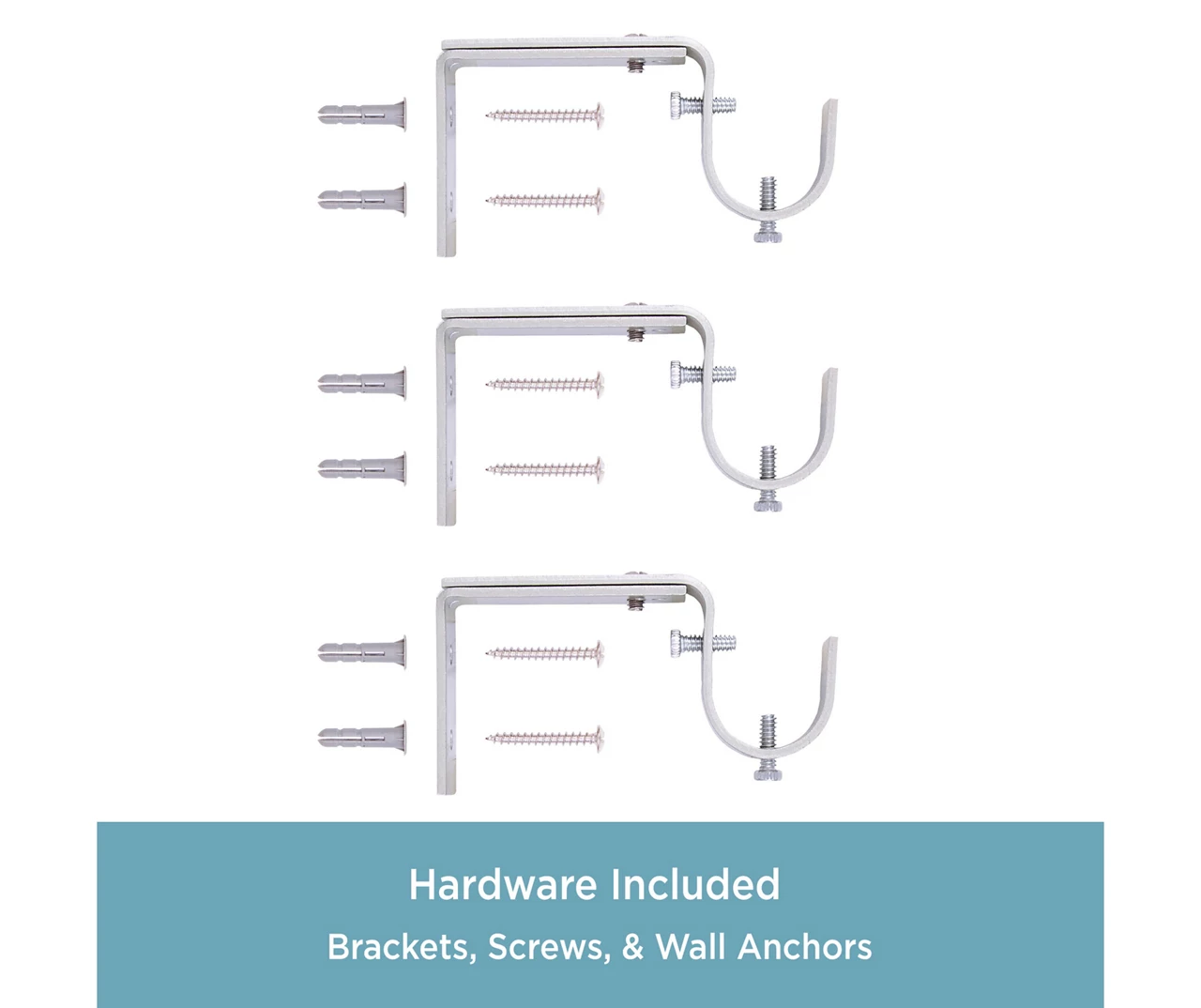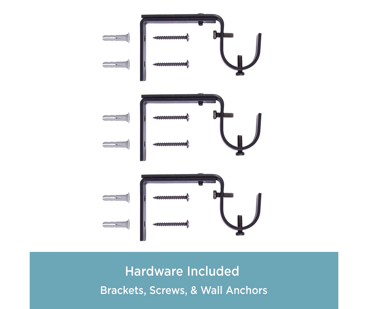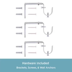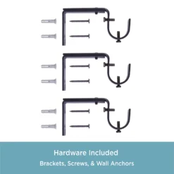 - Includes 1 telescoping curtain rod with finials, 2 brackets, 1 center support, screws, drywall anchors and installation instructions