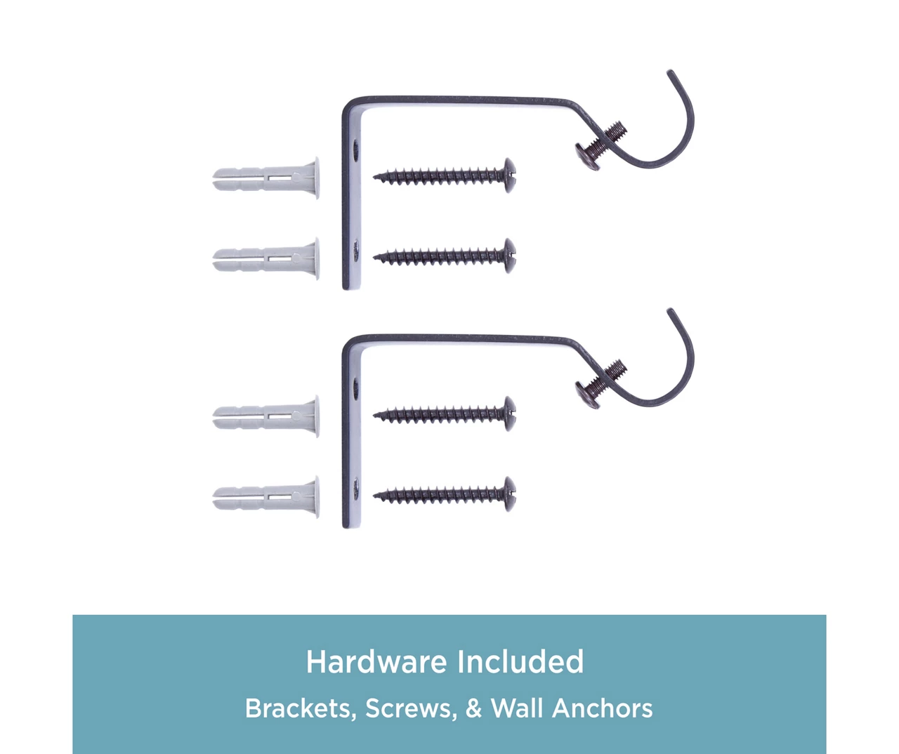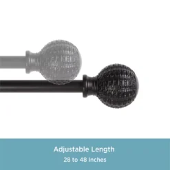 - 5/8″ diameter curtain rod adjusts from 28-48″ and projects 3″ from the wall