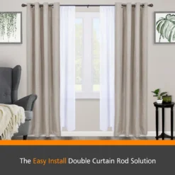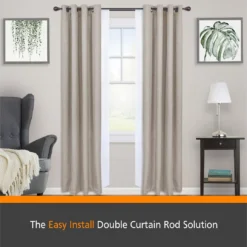 - Includes 1 telescoping double curtain rod with finials, 2 mounting brackets, 1 center support, screws, drywall anchors and installation instructions