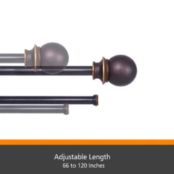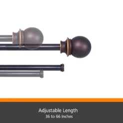 - 5/8″ diameter curtain rod in oil rubbed bronze adjusts from 36-66″ and projects 3.925″ from the wall