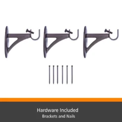 - Includes 1 telescoping curtain rod with finials, 2 brackets, 1 center support, nails, measuring template and installation instructions
