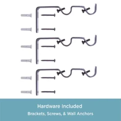 - Includes 1 telescoping back curtain rod, mounting brackets, center support, screws, drywall anchors and installation instructions