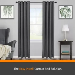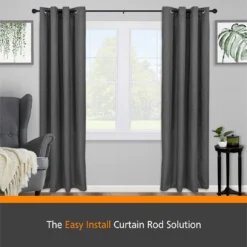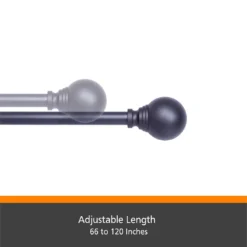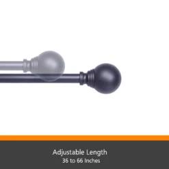 - 5/8″ diameter curtain rod in black adjusts from 36-66″ and projects 3″ from the wall
