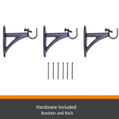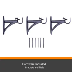 - Includes 1 telescoping curtain rod with finials, 2 brackets, 1 center support, nails, measuring template and installation instructions