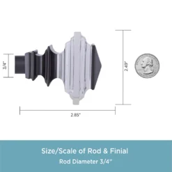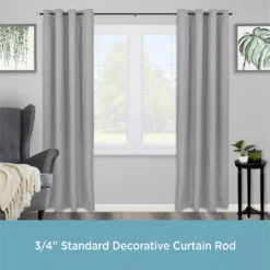 - 3/4″ diameter curtain rod adjusts from 36-66″ and projects 3.73″ from the wall