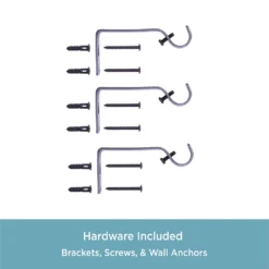 - Includes 1 telescoping curtain rod with finials, 2 brackets, 1 center support, screws, drywall anchors and installation instructions
