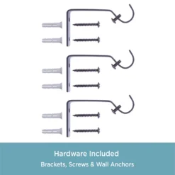 - 5/8″ diameter curtain rod adjusts from 28-48″ and projects 3″ from the wall