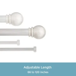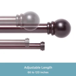 - Double curtain rod adjusts from 36-66″ with the 1″ diameter front rod projecting 5.2″ from the wall and the back rod projecting 2.75