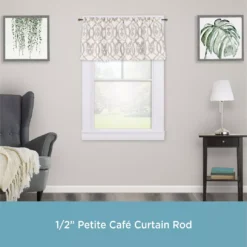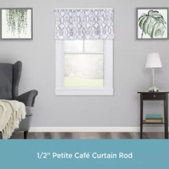 - 1/2″ diameter curtain rod adjusts from 28-48″ and projects 2.75″ from the wall