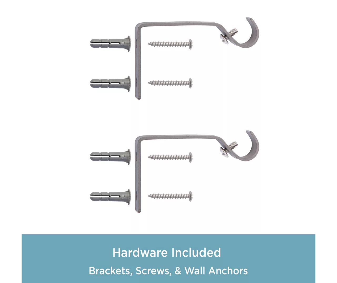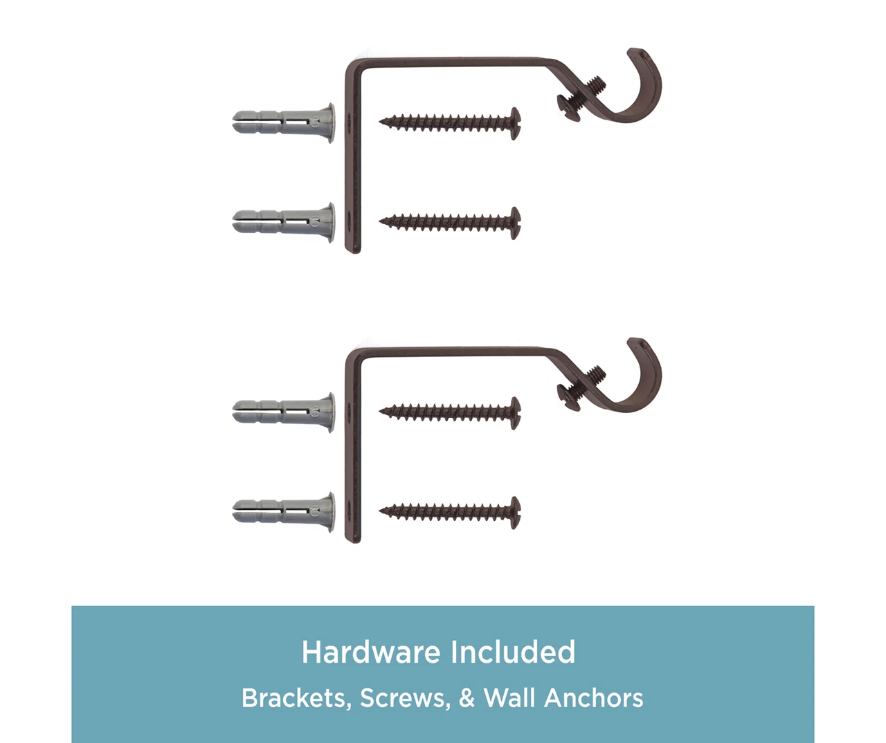- Includes 1 telescoping curtain rod with finials, 2 brackets, screws, drywall anchors and installation instructions