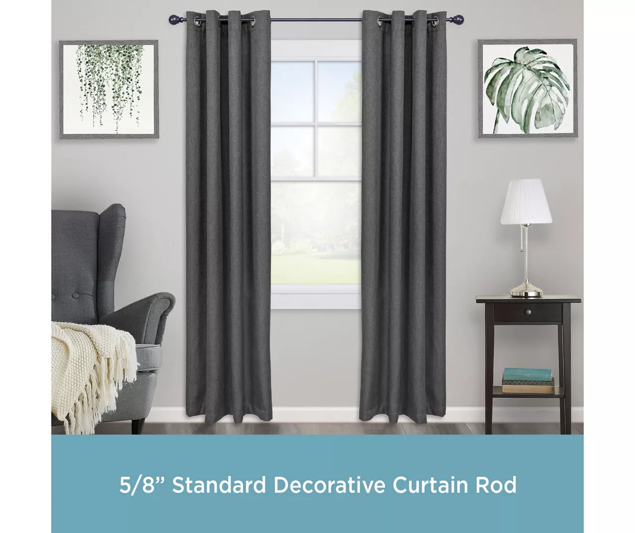 - 5/8″ diameter curtain rod adjusts from 28-48″ and projects 2.97″ from the wall