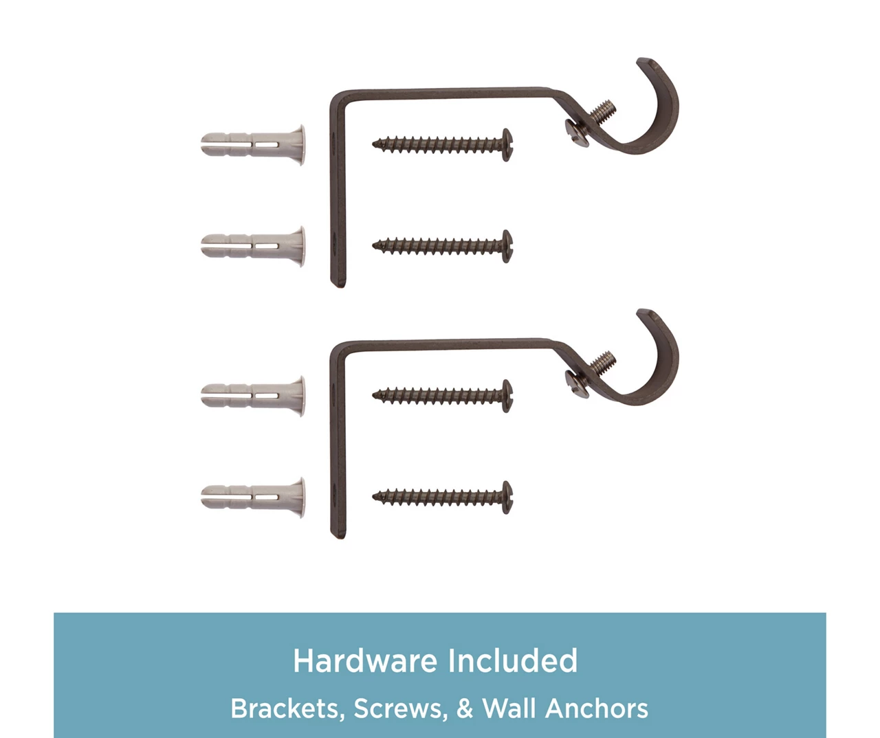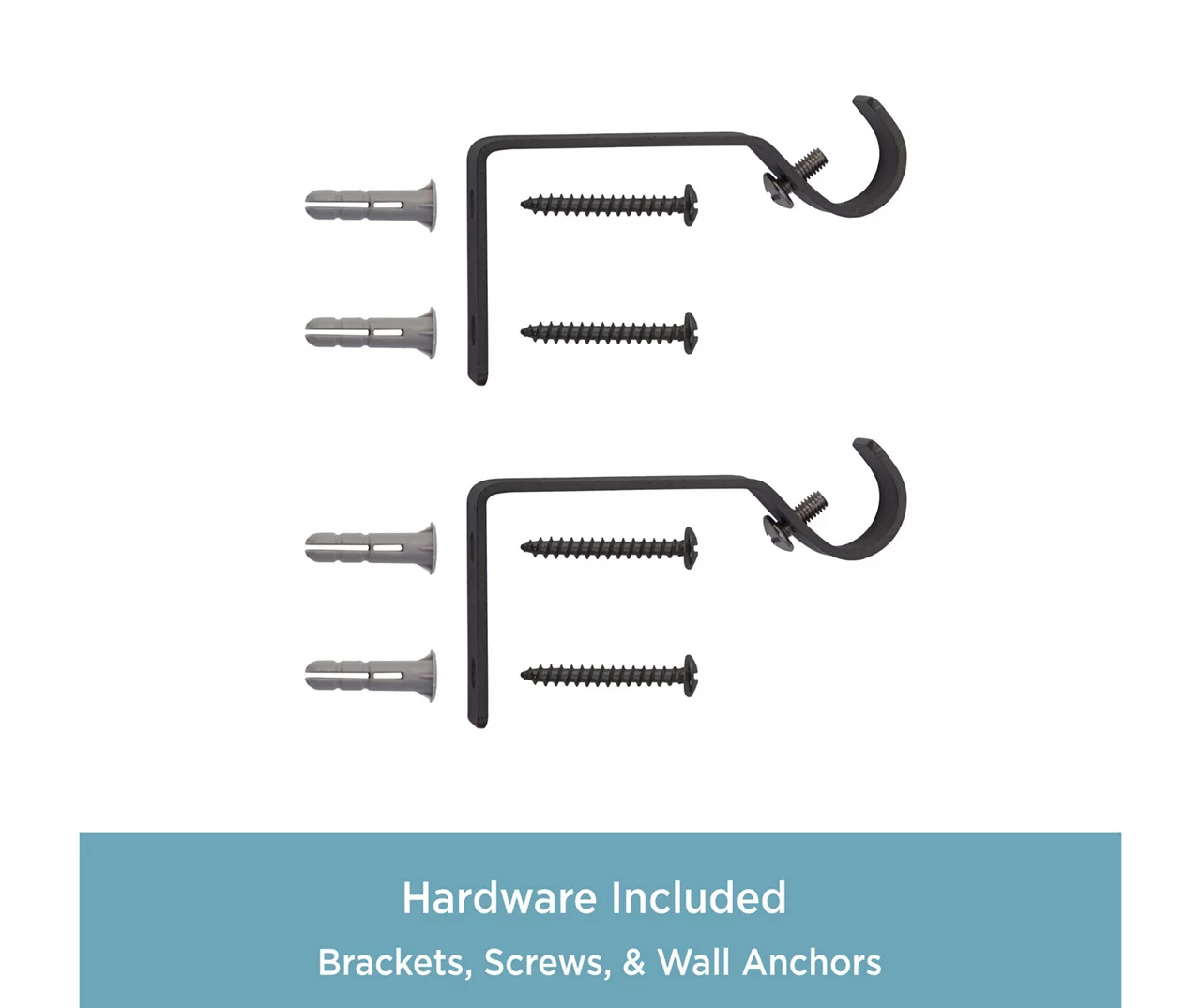 - Includes 1 telescoping curtain rod with finials, 2 brackets, screws, drywall anchors and installation instructions