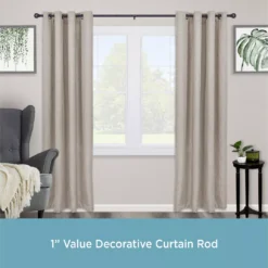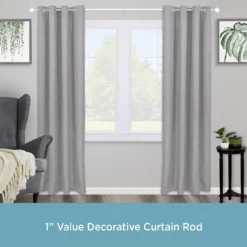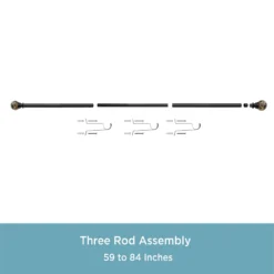 - 1″ diameter curtain rod adjusts from 30-84″ and projects 3.38″ from the wall