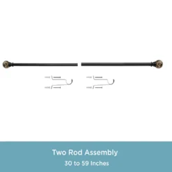 - Includes 1 telescoping curtain rod with finials, 2 brackets, 1 center support, screws, drywall anchors and installation instructions