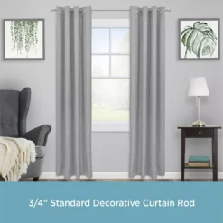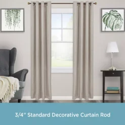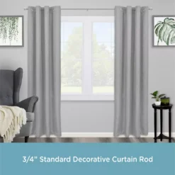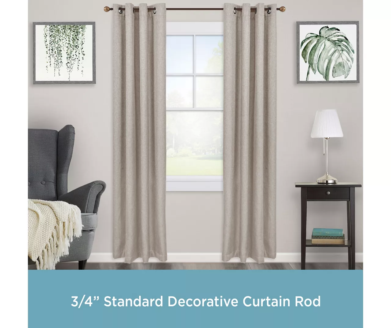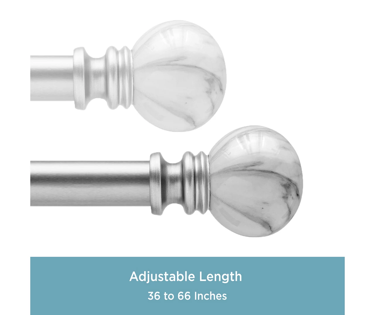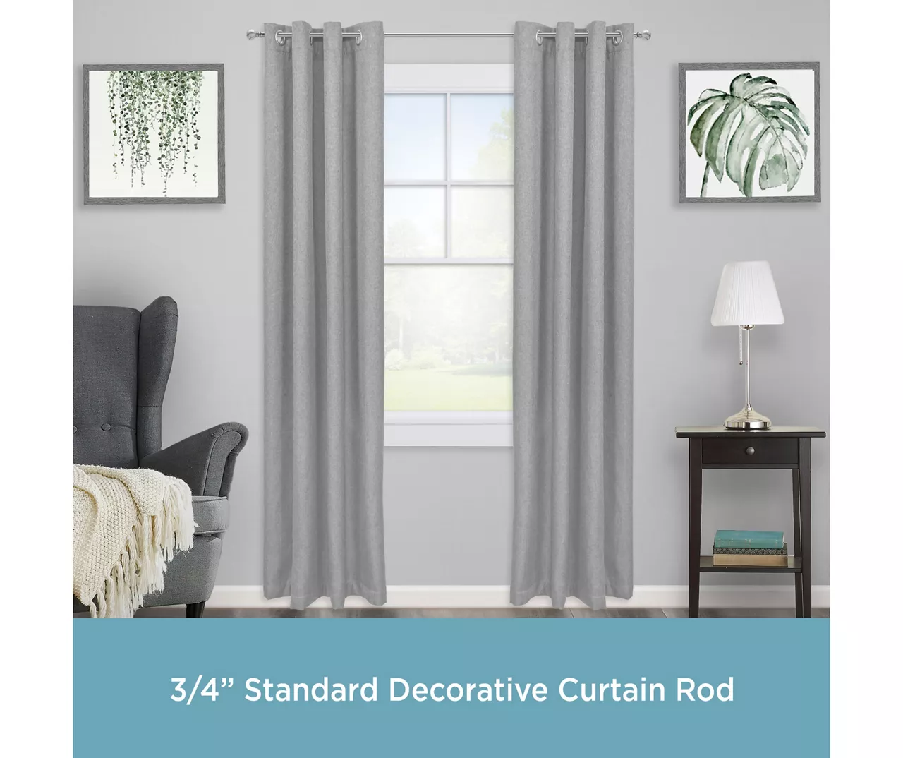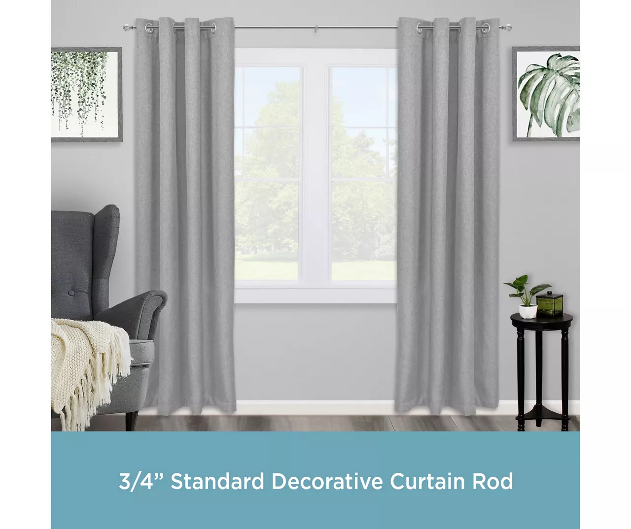 - 3/4″ diameter curtain rod adjusts from 36-66″ and projects 3.5″ from the wall