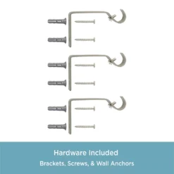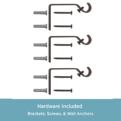 - Includes 1 telescoping curtain rod with finials, 2 brackets, 1 center support, screws, drywall anchors and installation instructions