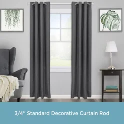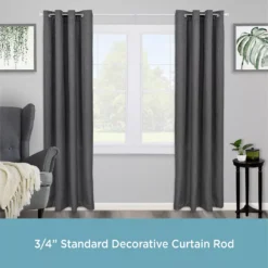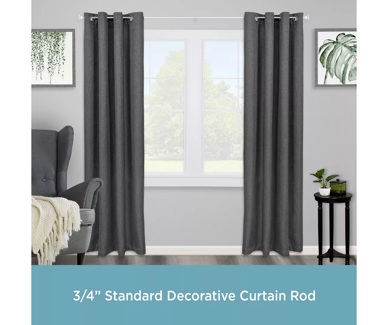 - 3/4″ diameter curtain rod adjusts from 36-66″ and projects 3.73″ from the wall