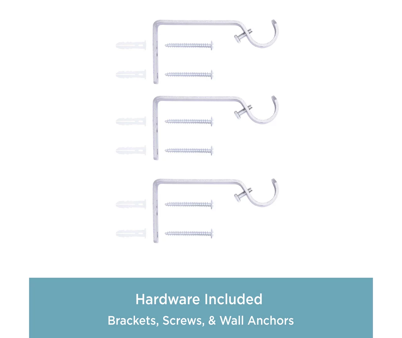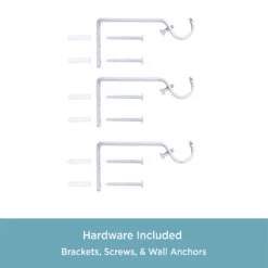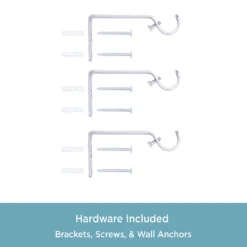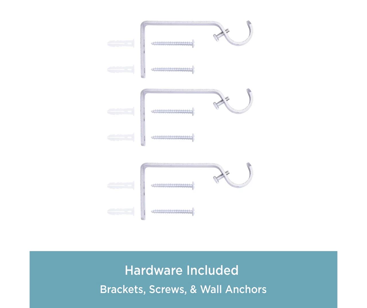 - Includes 1 telescoping curtain rod with finials, 2 brackets, 1 center support, screws, drywall anchors and installation instructions