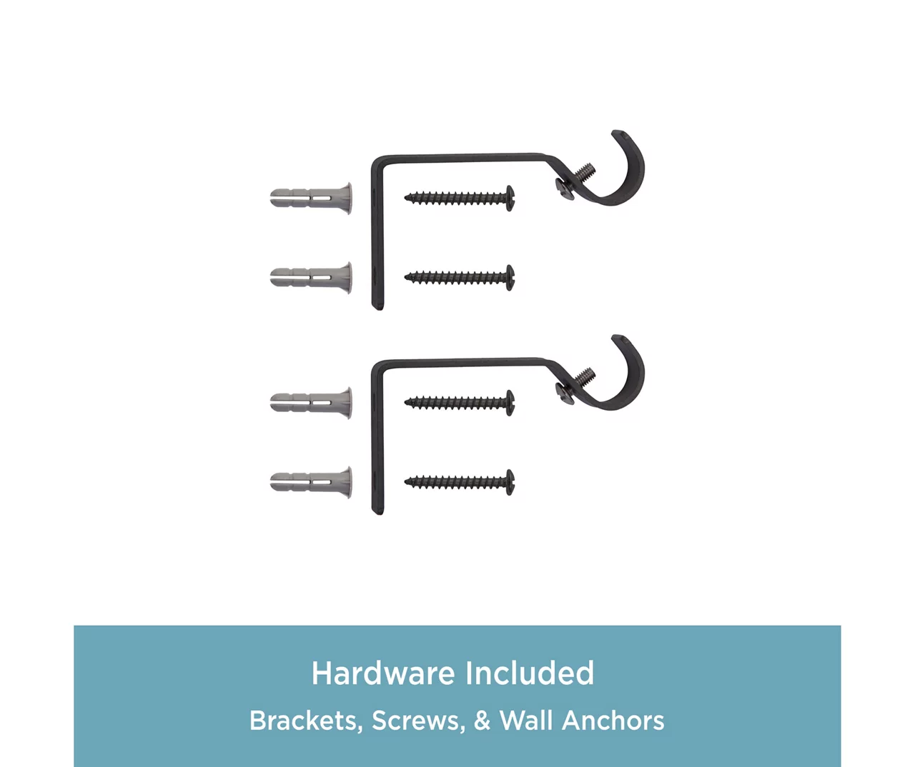 - Includes 1 telescoping curtain rod with finials, 2 brackets, screws, drywall anchors and installation instructions