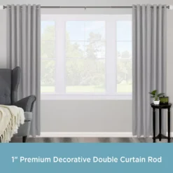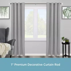 - 1″ diameter curtain rod adjusts from 48-86″ and includes adjustable brackets that project 3.75-5.75″ from the wal