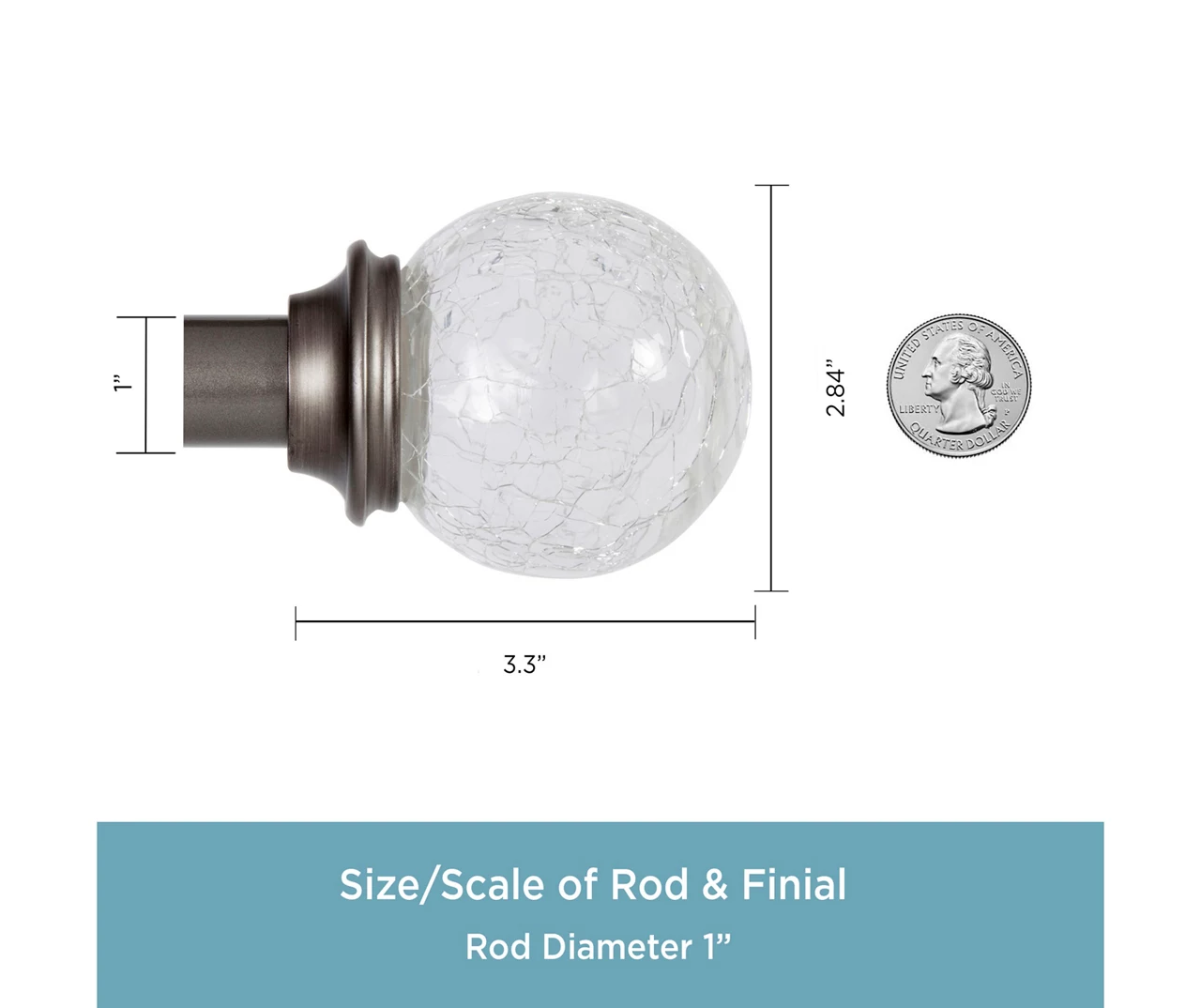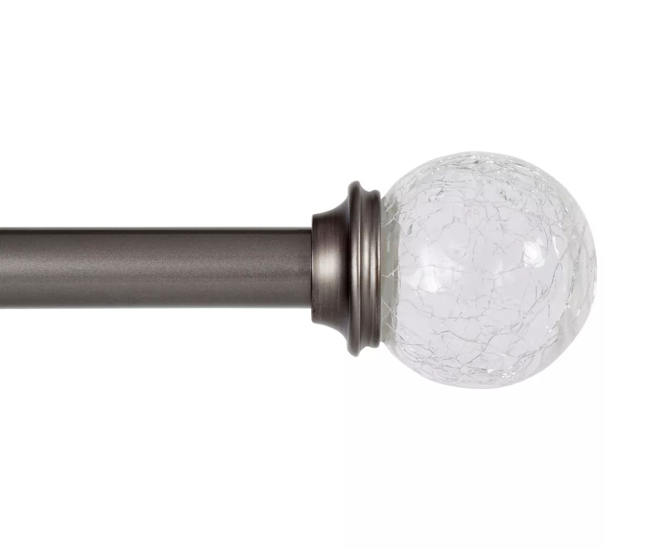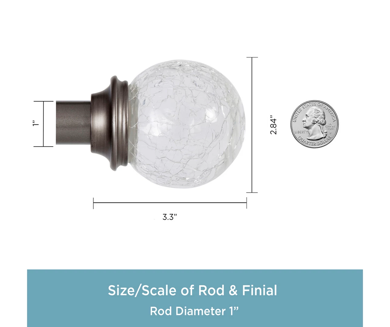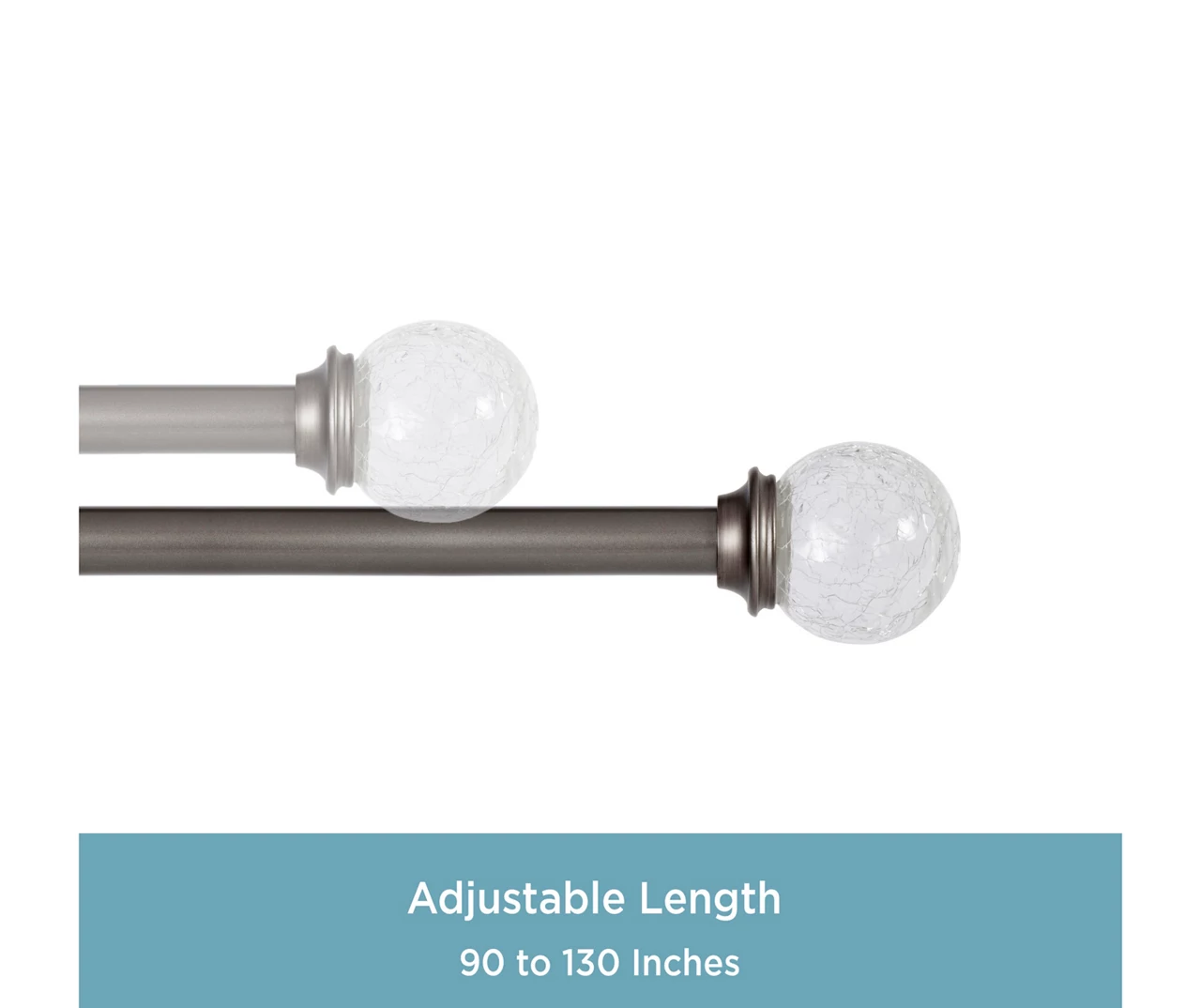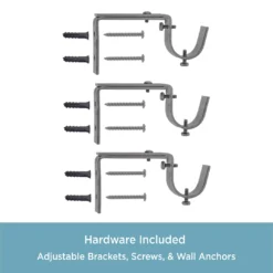 - Includes 1 telescoping curtain rod with finials, 2 adjustable brackets, 1 center support, screws, drywall anchors and installation instructions