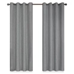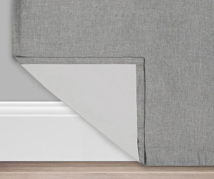 Find the perfect combination of fashion and function with the gray Kira window curtain from Eclipse. This beautiful panel offers Absolute Zero 100% blackout benefits with a premium thermal lining that gives a rich handfeel and provides luxurious drapability. It features gray textured fabric with a heathered herringbone design, making it versatile and perfect for the bedroom, living room, dining room or office and allows you to enjoy all of the light-blocking, noise-reducing and energy-saving benefits. Reverse of panel is light gray.