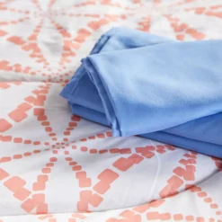 Real Living Coral & Blue Geometric Floral Bed-in-a-Bag Set