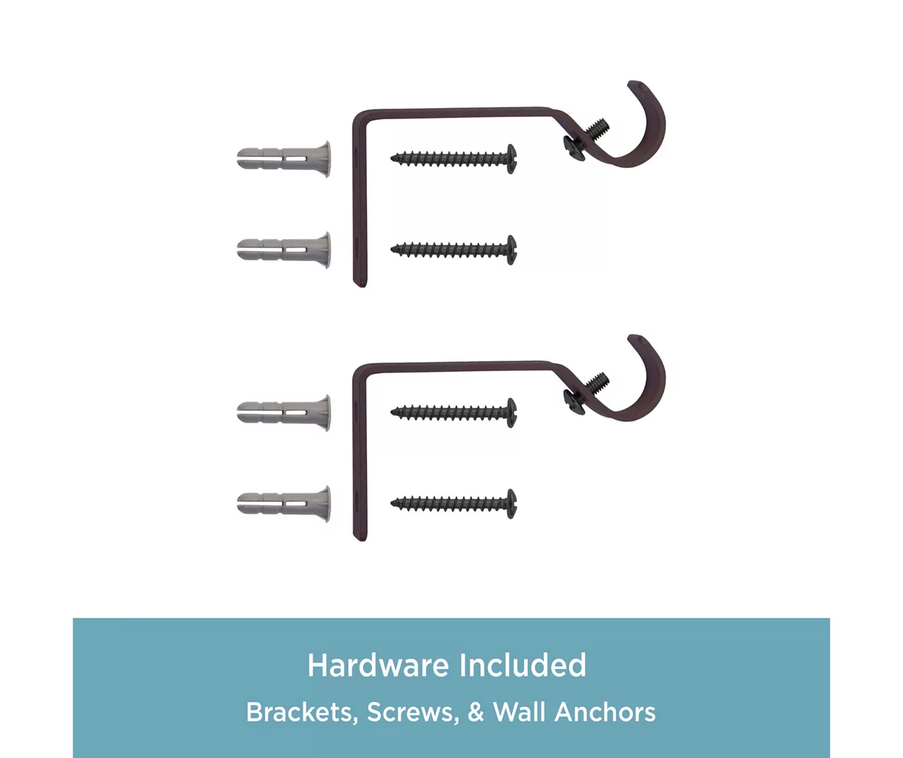 - Includes 1 telescoping curtain rod with finials, 2 brackets, screws, drywall anchors and installation instructions