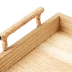 With a sleek low-profile rectangular shape and jute-wrapped metal handles on each side, this wooden tray from Broyhill makes a contemporary foundation for your treat or decorative displays.