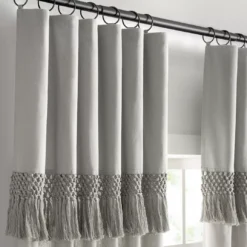 Bring artistic cultivated design to your windows with this Mercantile Lucinda ringed light-filtering curtain panel. It features an attached knotted fringe valance, which provides exceptional style and eliminates the need for a separate valance. The fabric also gently filters light while providing enhanced privacy.