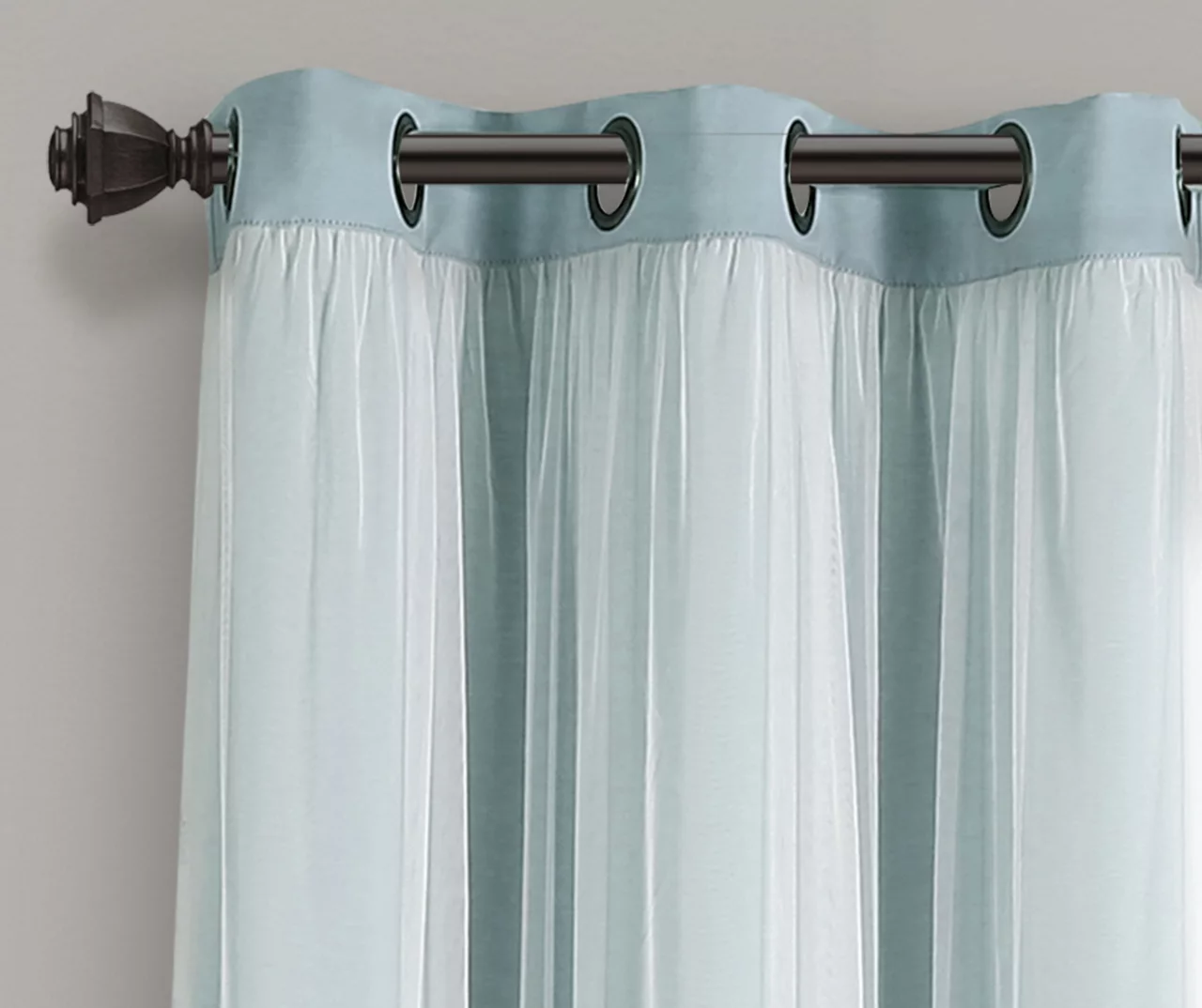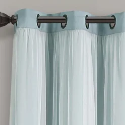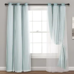 - Calming blue blackout lining with sheer white overlay