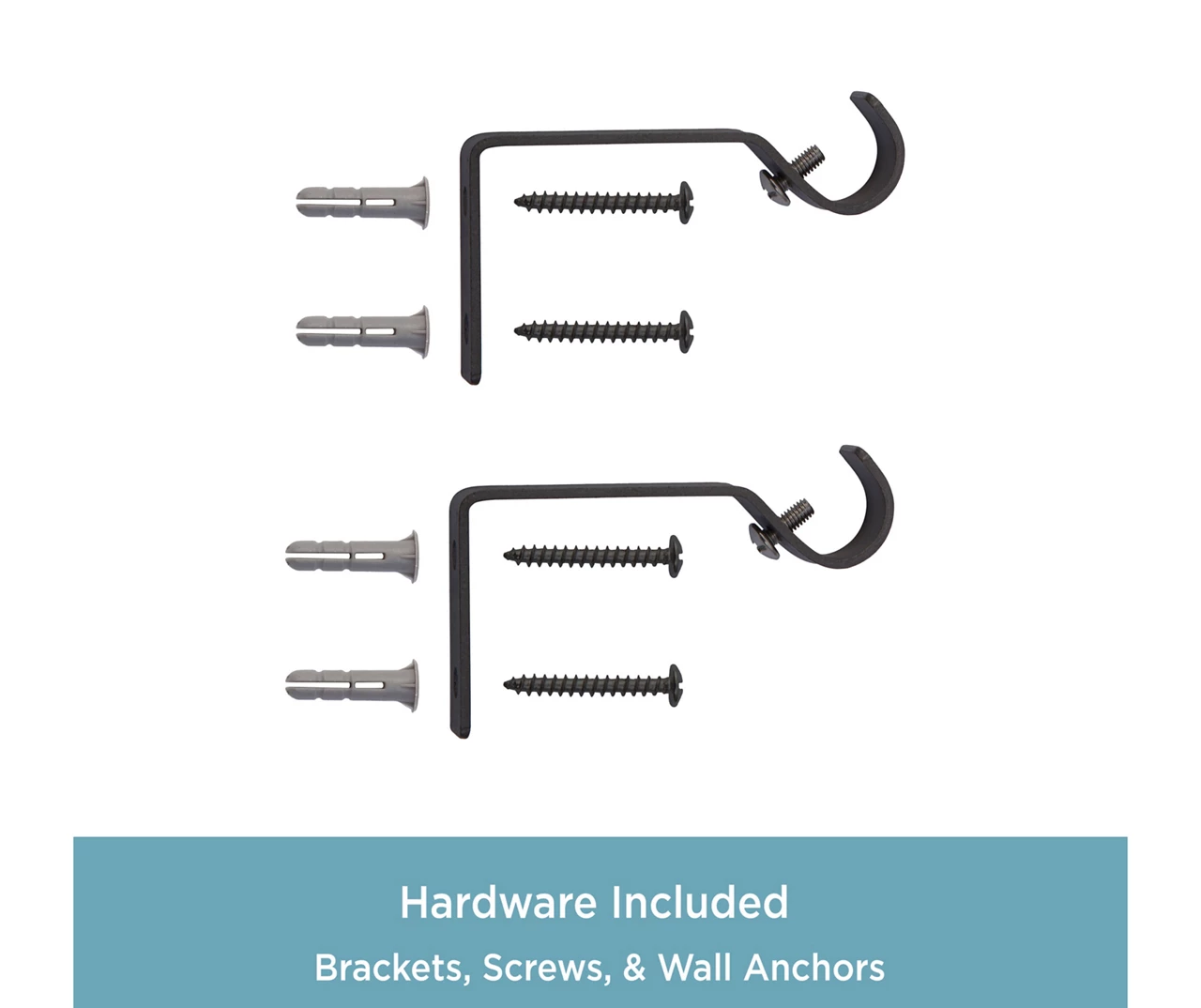 - Includes 1 telescoping curtain rod with finials, 2 brackets, screws, drywall anchors and installation instructions