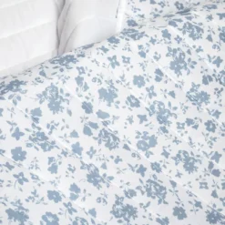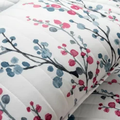 - Reversible quilt can be switched to a light blue floral pattern