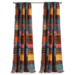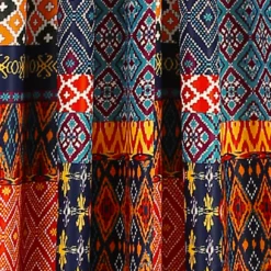- Intricate and vibrant patchwork design features shades of red, blue, yellow, orange, purple, teal and more