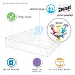 - 1 Mattress Pad:78″W x 80″L + 14″D