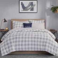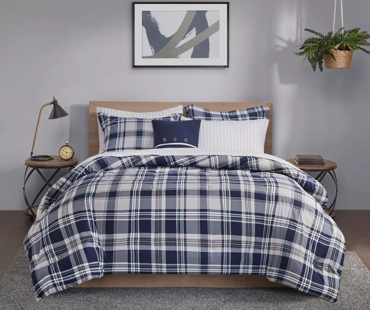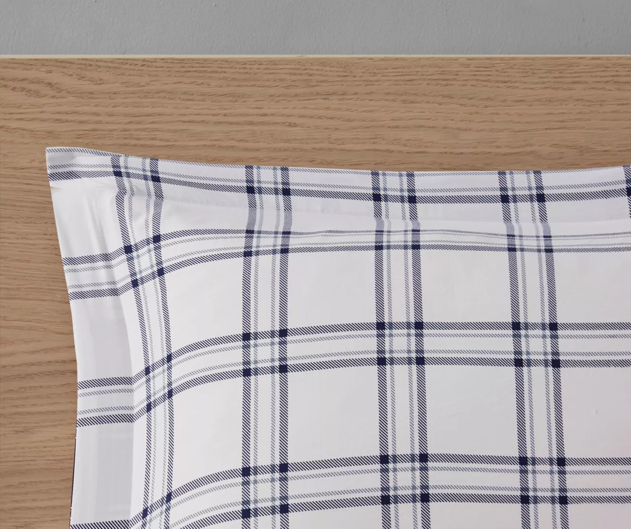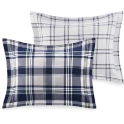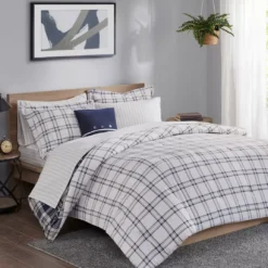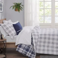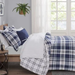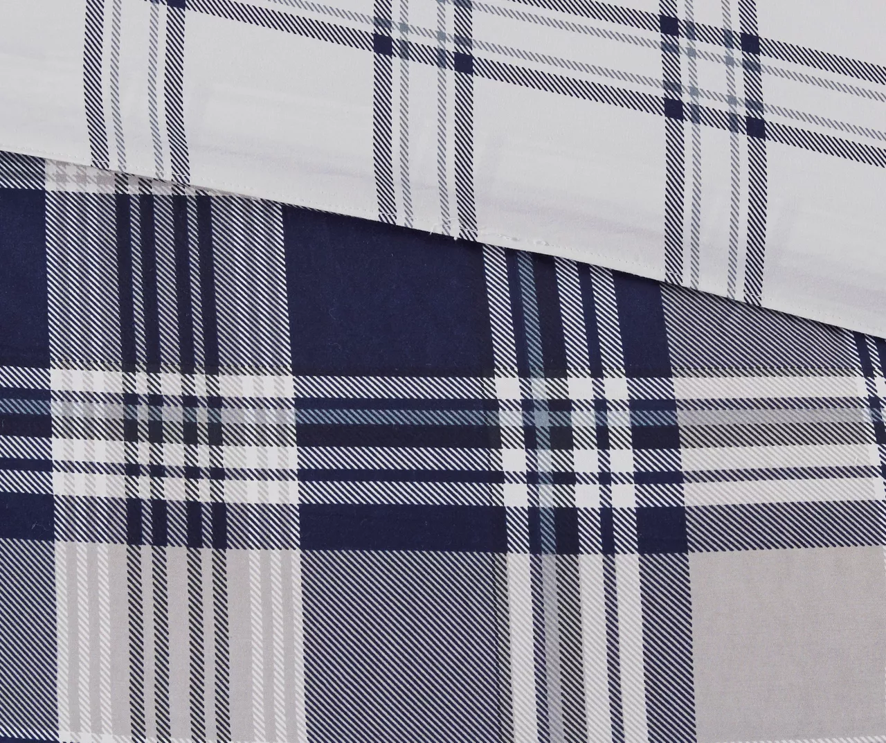 Restyle your bedroom with the Leroy Reversible Complete Bedding Set. The reversible comforter and shams feature a plaid print on the face and a white plaid print on the reverse, for a charming casual look. A coordinating square decorative pillow adds a finishing touch to the comforter. Also included is a sheet set, complete with a flat sheet, fitted sheet, and 2 pillowcases. Bringing the best in health and wellness, this bedding set also features an anti-microbial treatment that provides built-in freshness protection, reducing the growth of odor causing bacteria and keeps fabric lasting longer. This bedding set is also OEKO-TEX certified, meaning it does not contain any harmful substances or chemicals, ensuring quality comfort and wellness.