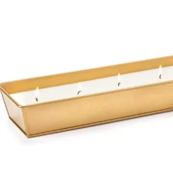 Create a dramatic display on a table or mantel with this 8-wick candle from Broyhill’s New Beginnings collection. Notes of eucalyptus and citrus mingle on a base of sandalwood and sage for a therapeutic scent that creates a warm and welcoming ambiance. The golden metal tray completes the look with sharp and sleek contemporary flair.