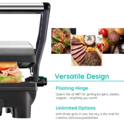 - Quick and tasty meals are so easy to whip up thanks to the grill’s surface size, versatility and easy-to-follow lights