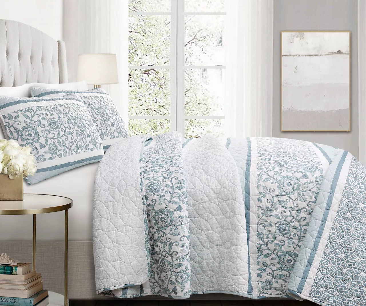 An elegant floral print in blue and white hues brings a touch of garden elegance to your sleep space, while the breathable cotton construction keeps you cozy and comfy through the night.