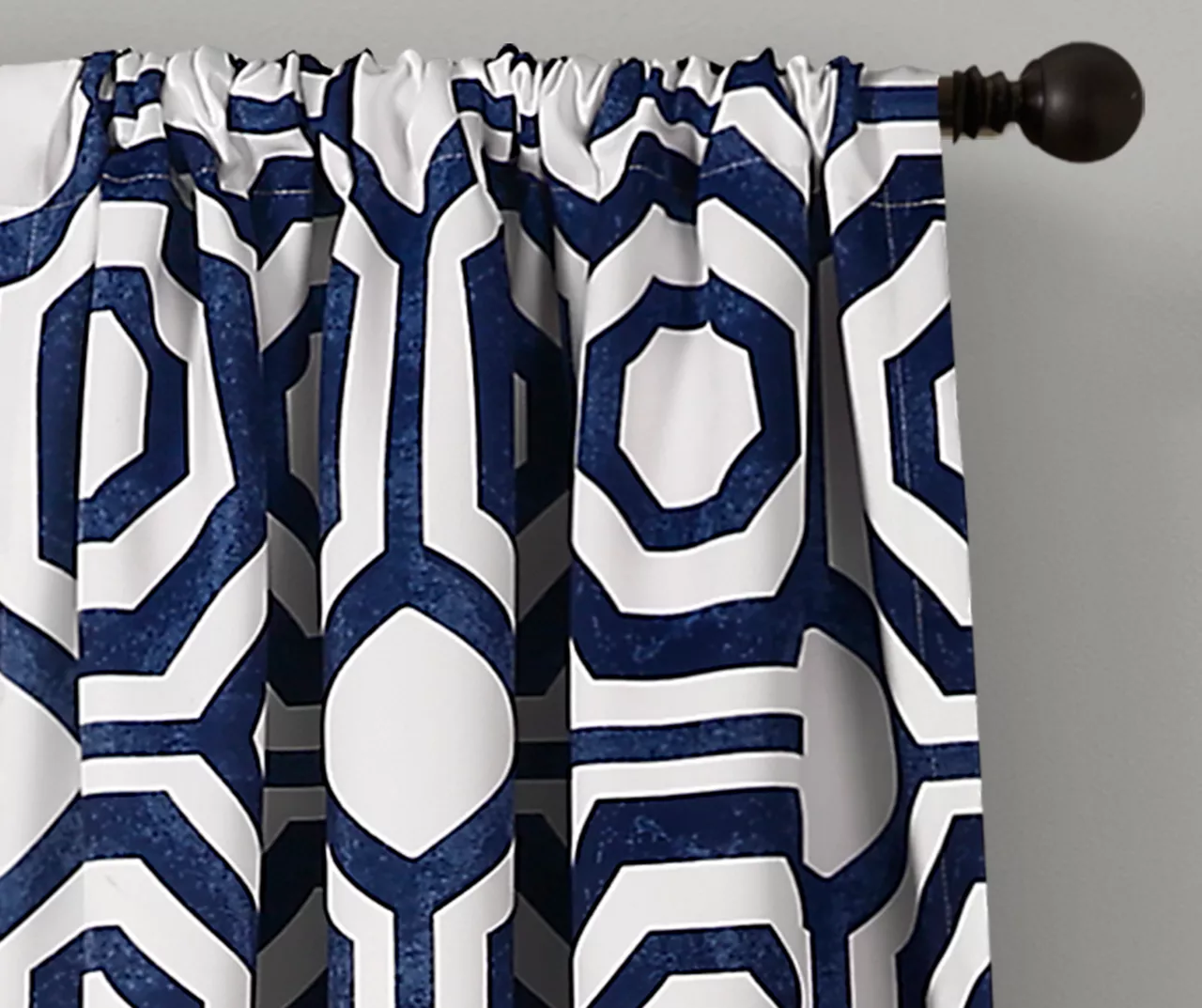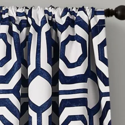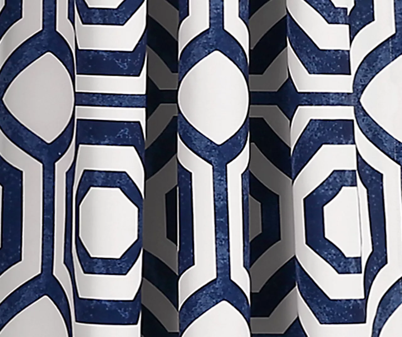 A unique navy and white octagonal pattern makes these room-darkening curtain panels stand out in style. Printed on light-blocking fabric, they help to filter out light and heat. They’re the perfect finishing touch in a living room, dining room, bedroom or office.