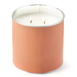 - Faux leather tie displays the candle’s label tag