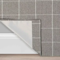 - Textured, tonal brown fabric with a classic square pattern