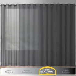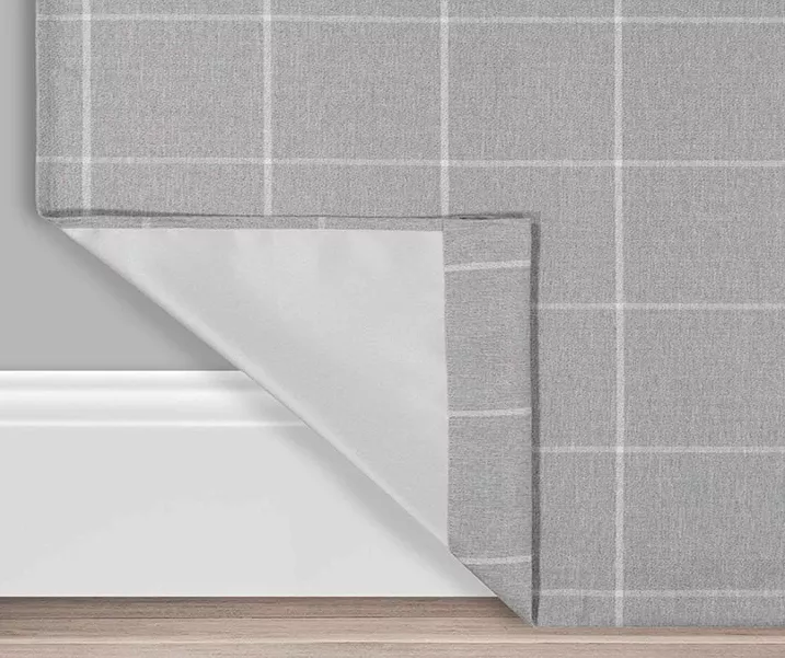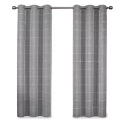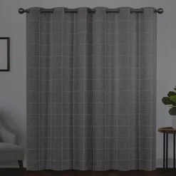 Find the perfect combination of fashion and function with the Eclipse Peconic blackout window curtain. This transitional and functional panel helps provide privacy, manage light, reduce noise and help with energy savings, without sacrificing the latest looks in window fashion. It offers blackout benefits and features textured, tonal gray fabric with a classic square pattern. Blackout yarns are intricately woven into the panel, giving it a rich handfeel and luxurious drapability.