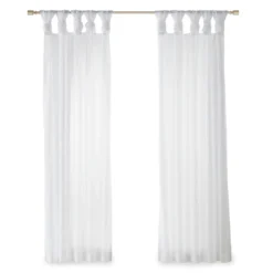 Soften your space with the Persis twisted tab voile sheer window panel pair. This window pair provides a simple and airy update to your décor, with its lightweight voile sheer fabric and a weighted hem for easy draping and movement. The DIY twist tab top creates beautiful and delicate folds for a stylish decorator’s touch. Machine washable and easy to hang, this window panel pair is perfect on its own for a soft filter or layer with others for a dramatic effect.