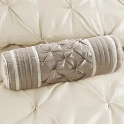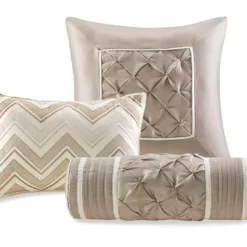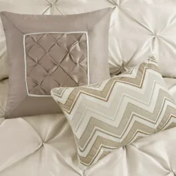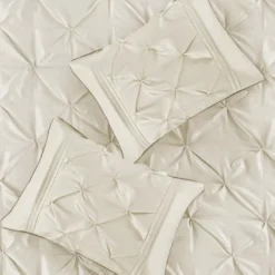 This beautifully tufted bedding set is from the Piedmont collection. Its ivory coloring makes this set easy to accessorize in your bedroom. The collection is made from 100% polyester polyoni and has pieced fabric sewn together to give this set added dimension. It’s finished with a smooth edge of fabric that creates a beautiful border around the comforter. A coordinating bed skirt, shams and decorative pillows complete the elegant look.