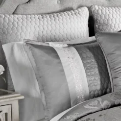 - Quilted, pleated, embroidered and pin tucked details on decorative pillows